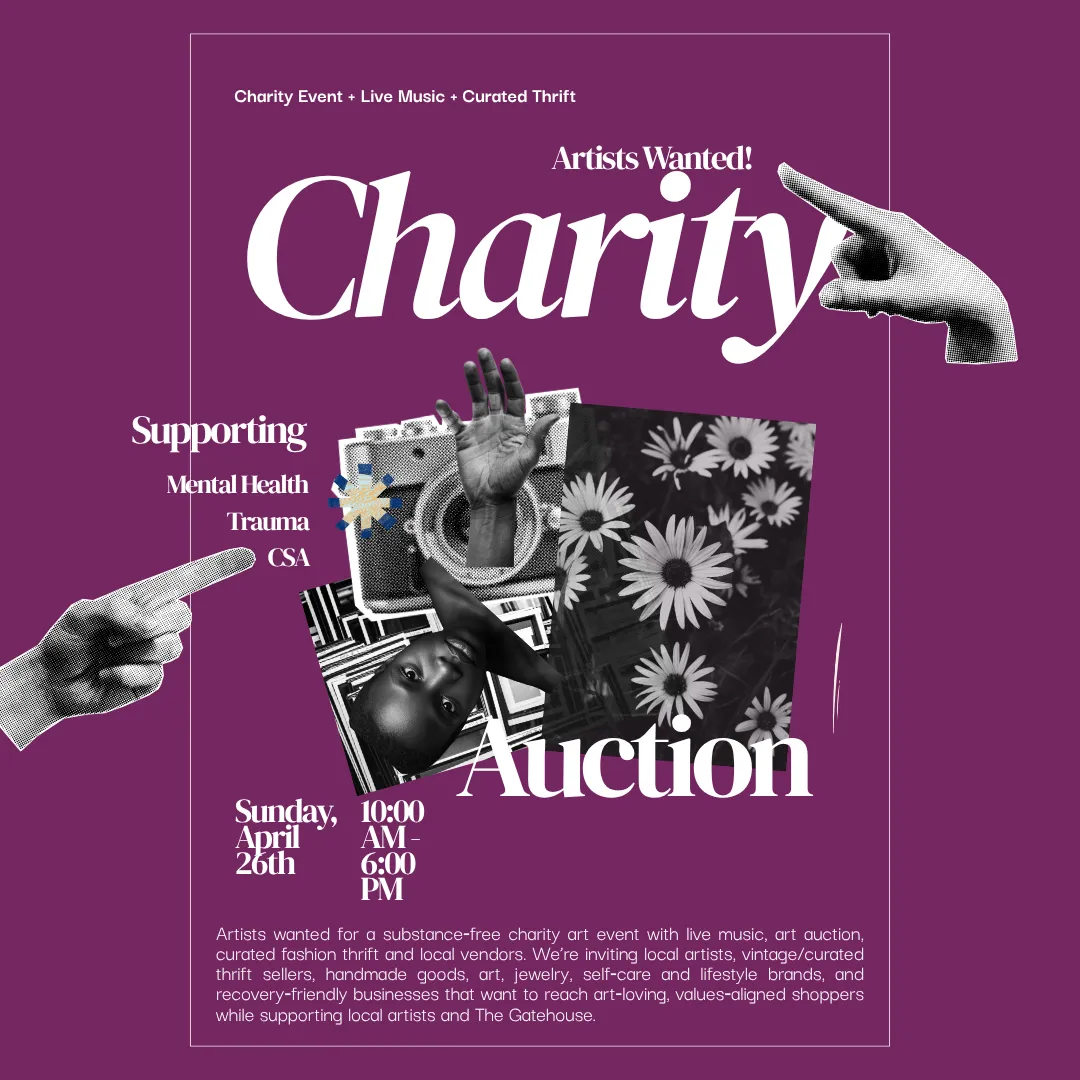 Proceeds from art sales and the event help support participating artists, core event costs, and a local community organization that offers peer‑based support and programs.